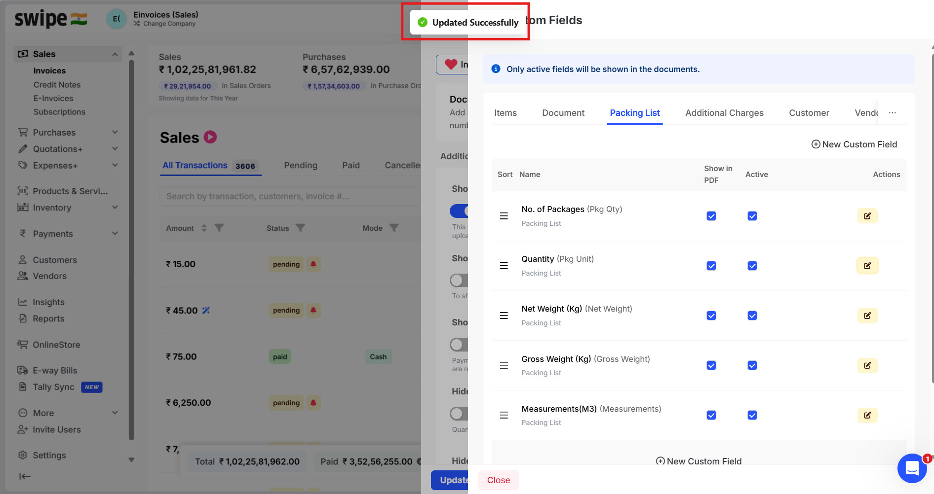 Step 3: Go to Packing List >> Click on edit for the field for which you want to change the name