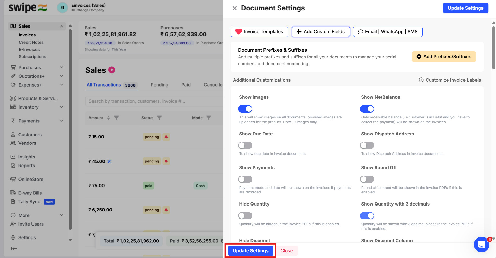Now, click on the “Document Settings” Option at the top right corner of the screen.