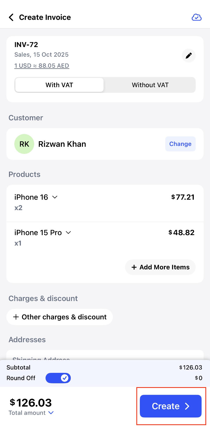 To create a multi currency invoice on IOS please check the below mentioned steps.