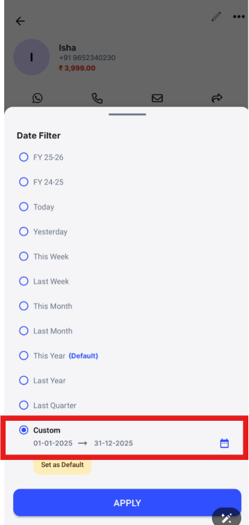 ,Step 4. Click on Apply to download the Ledger for the selected Date Range.