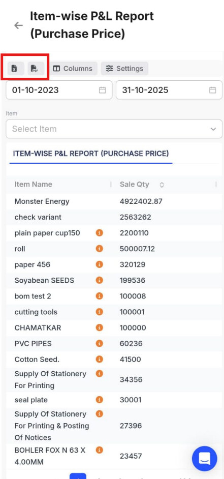To download the Item-wise Profit/Loss (Purchase Price) Report on Mobile Application, Please follow the below mentioned steps: