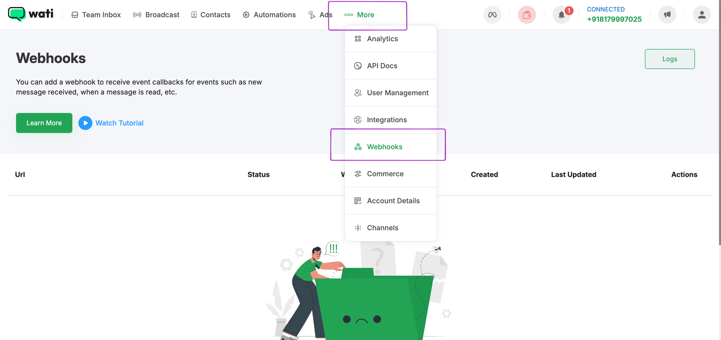 Go to More and select Webhooks.