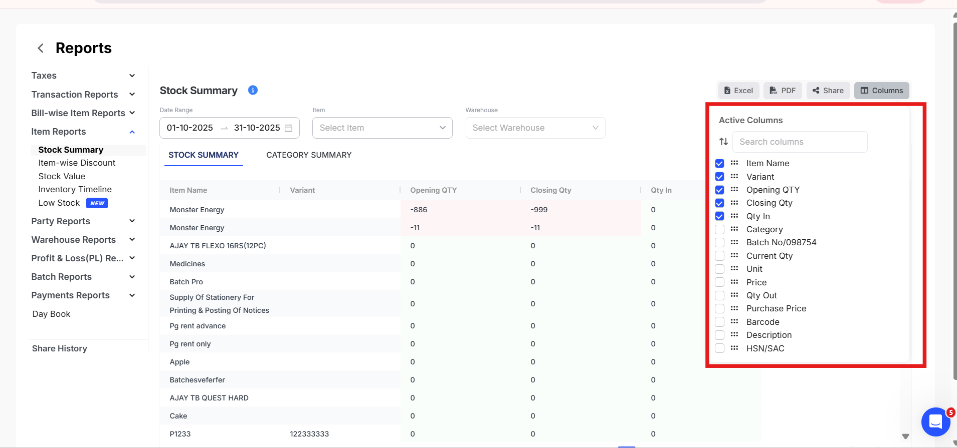 I have taken Stock summary under Item Reports.