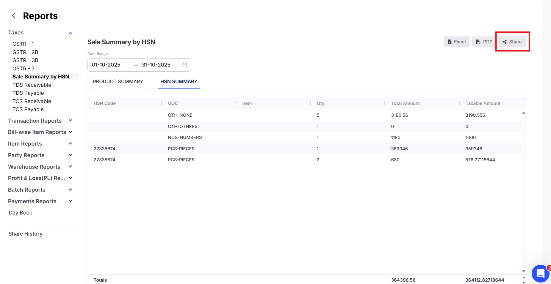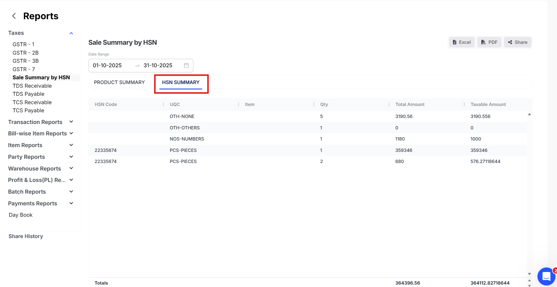 The HSN summary helps simplify tax reporting by organizing transactions with the right HSN codes, making GST filing easier and more accurate.