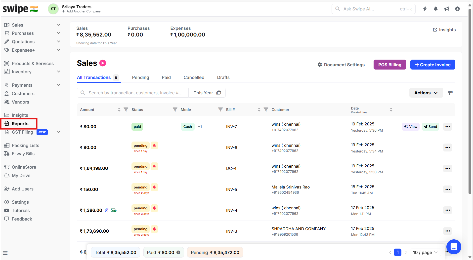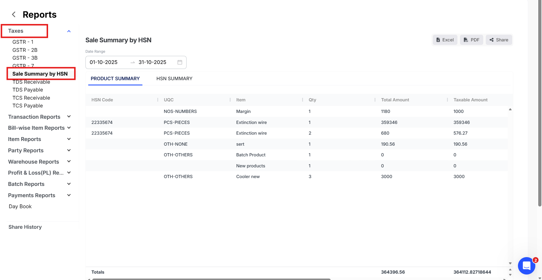 Step 2: Go to Taxes >> Click on sale summary by HSN