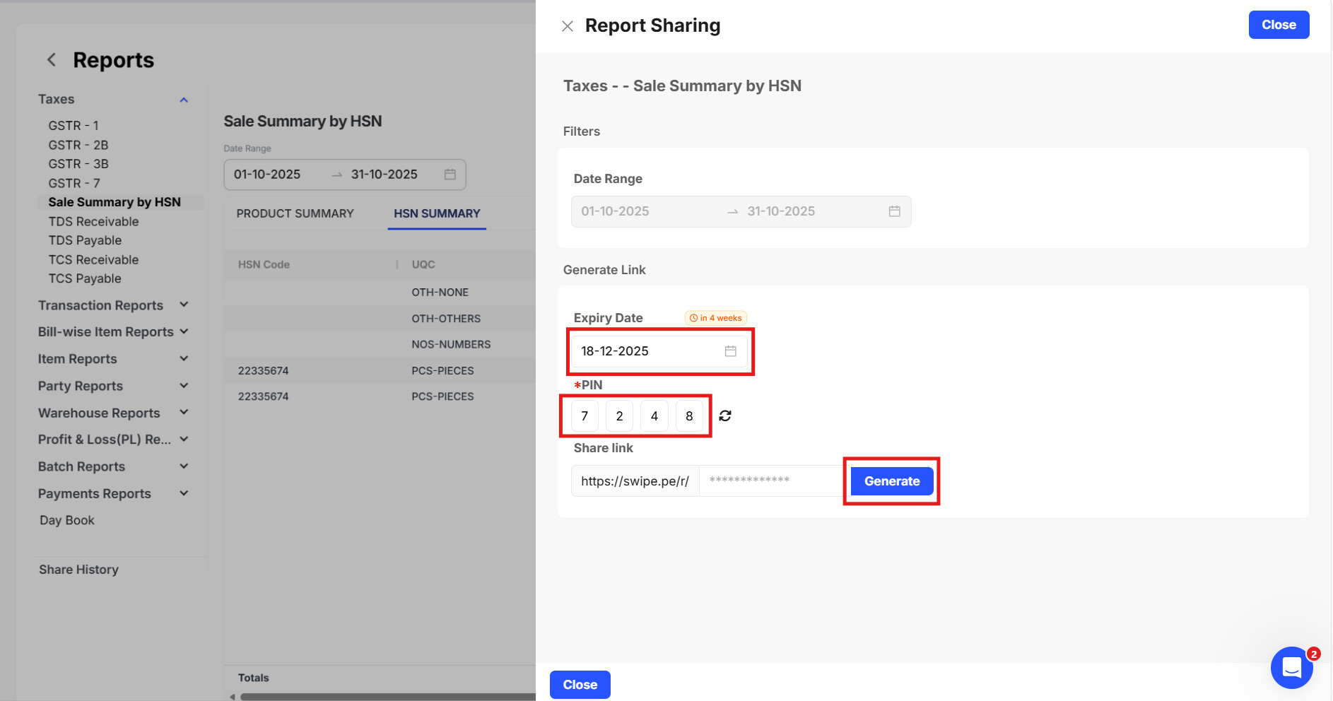 Step 5: Select the Expiry date of the link >> Generate a PIN code and Click on Generate.