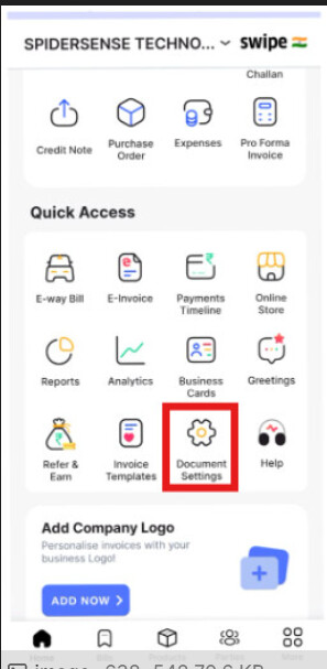 Step 1 - Click on Document Settings.